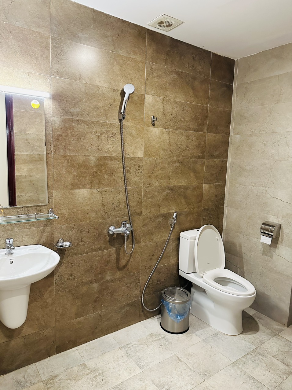 - Phòng tắm được trang bị các thiết bị hiện đại với bồn tắm kính sang trọng